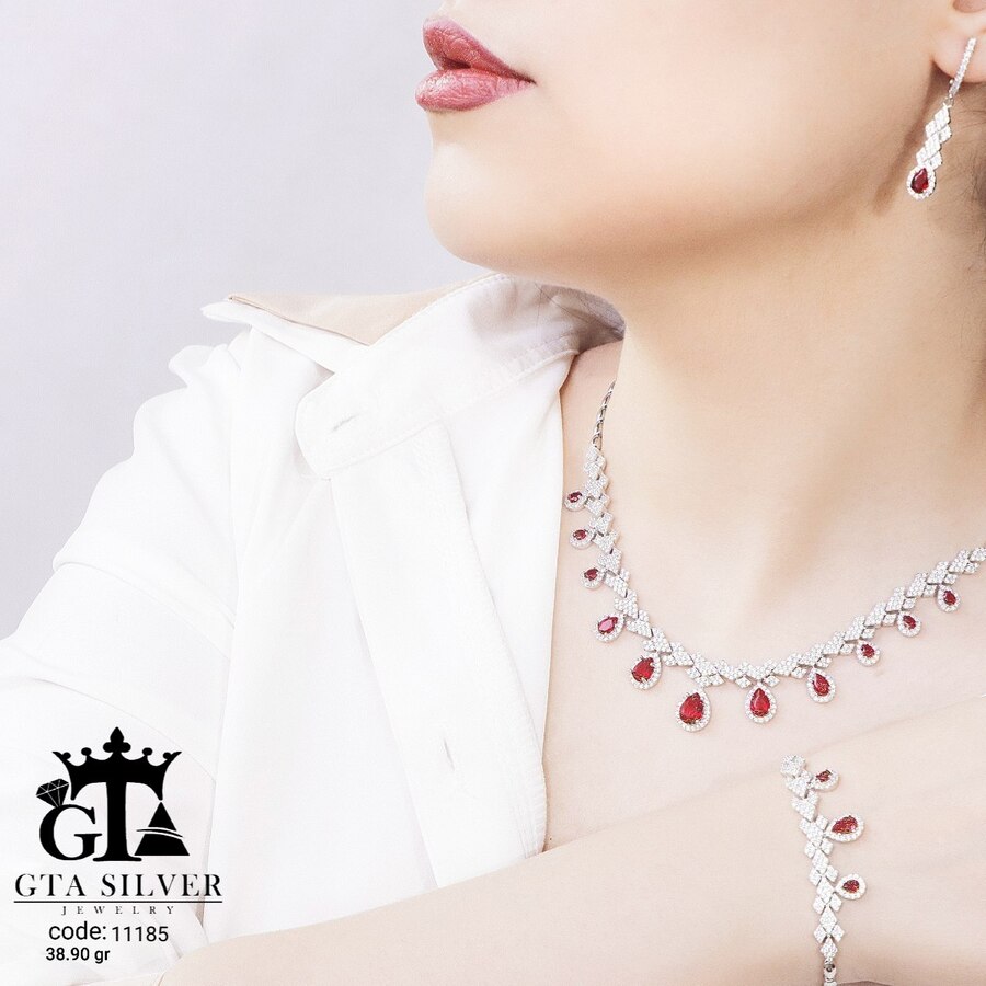 سرویس نقره مدل مارسا همراه با روکش آبطلای سفید؛ عیار 925، تمامی نگین های این سرویس جدید با روش جدید میکروستینگ مخراج کاری شده است.