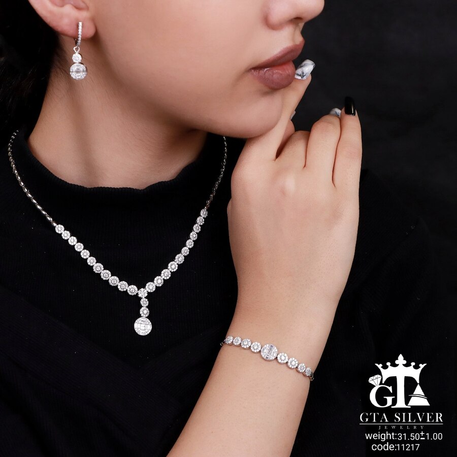 سرویس نقره مدل مارسا همراه با روکش آبطلای سفید؛ عیار 925، تمامی نگین های این سرویس جدید با روش جدید میکروستینگ مخراج کاری شده است.