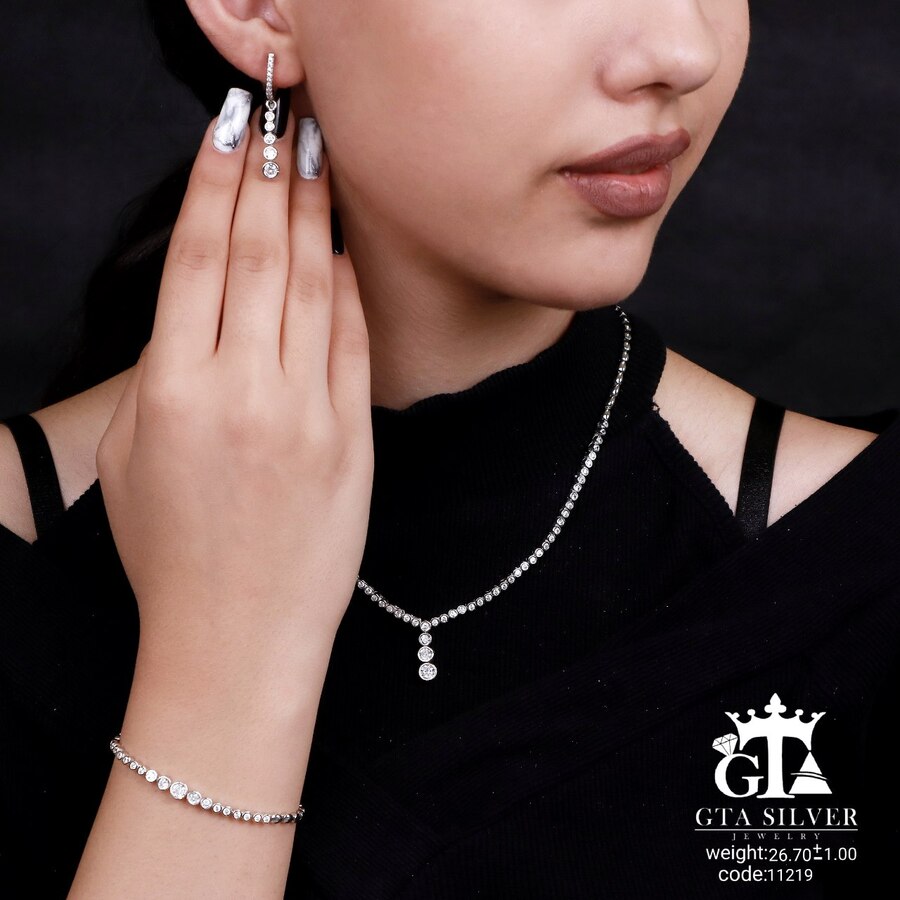 سرویس نقره مدل مارسا همراه با روکش آبطلای سفید؛ عیار 925، تمامی نگین های این سرویس جدید با روش جدید میکروستینگ مخراج کاری شده است.