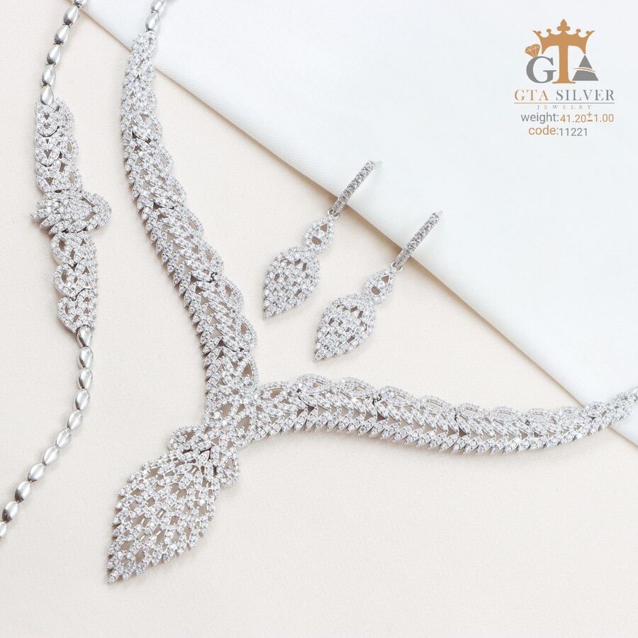 سرویس نقره مدل مارسا همراه با روکش آبطلای سفید؛ عیار 925، تمامی نگین های این سرویس جدید با روش جدید میکروستینگ مخراج کاری شده است.