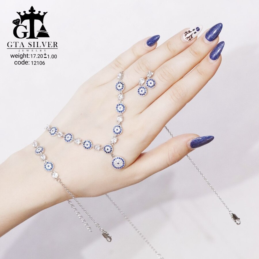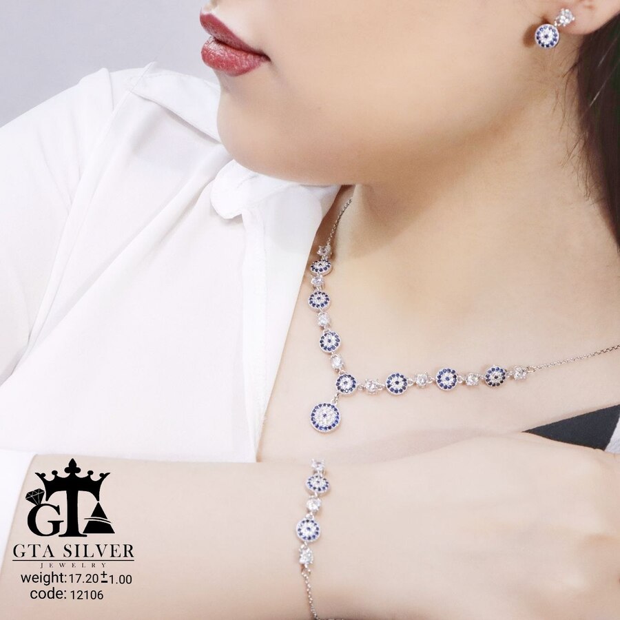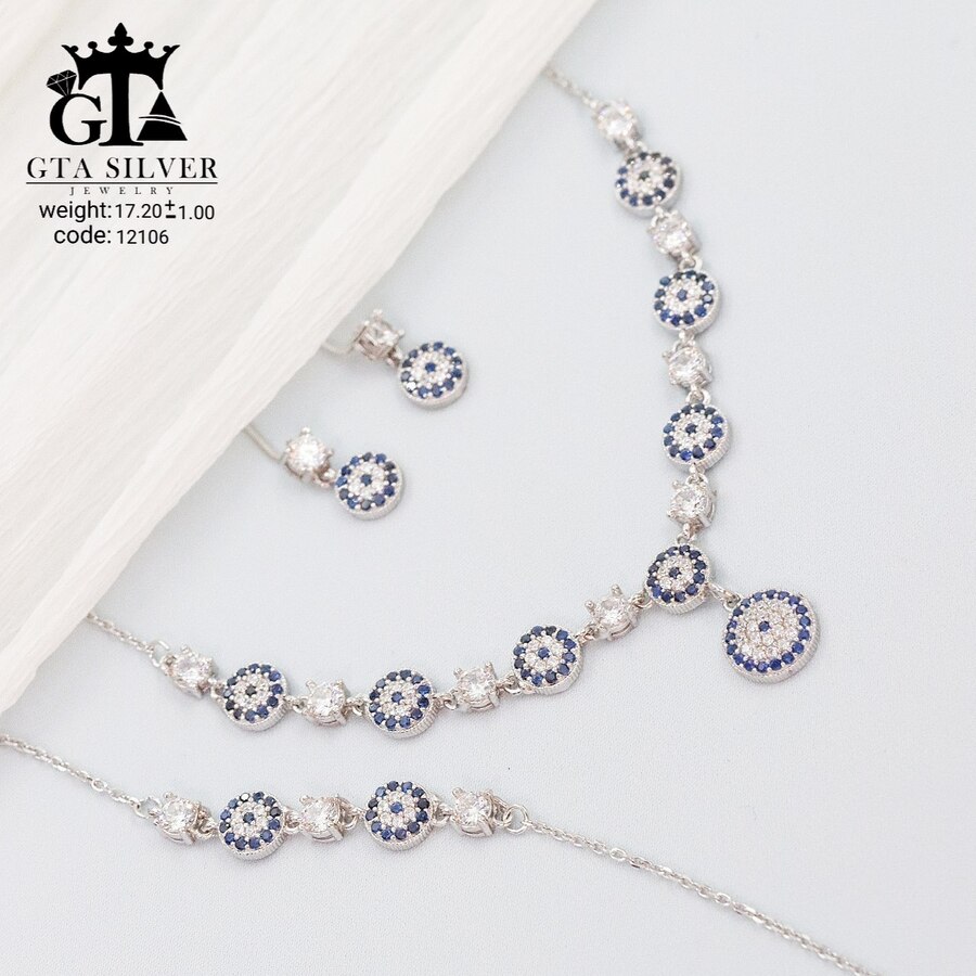 سرویس نقره میکرو زنجیری طرح چشم نظر کد 12107