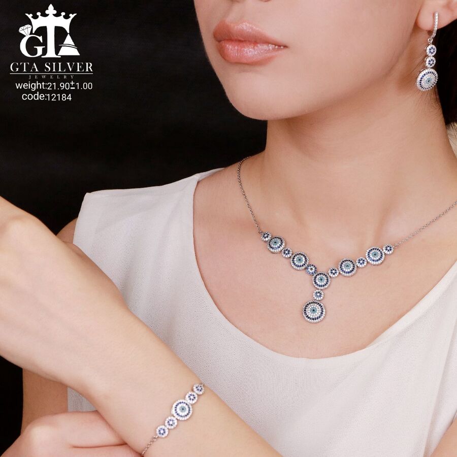 سرویس نقره میکرو زنجیری طرح چشم نظر کد 12184