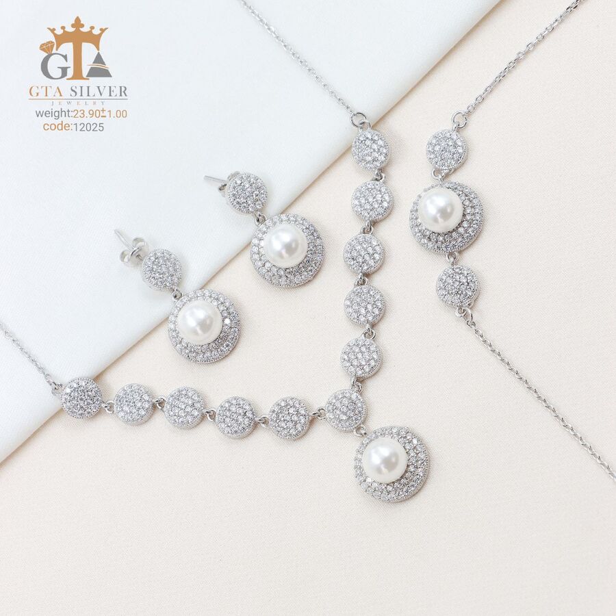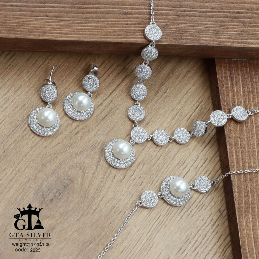 سرویس نقره میکرو زنجیری مرواریدی کد 12025