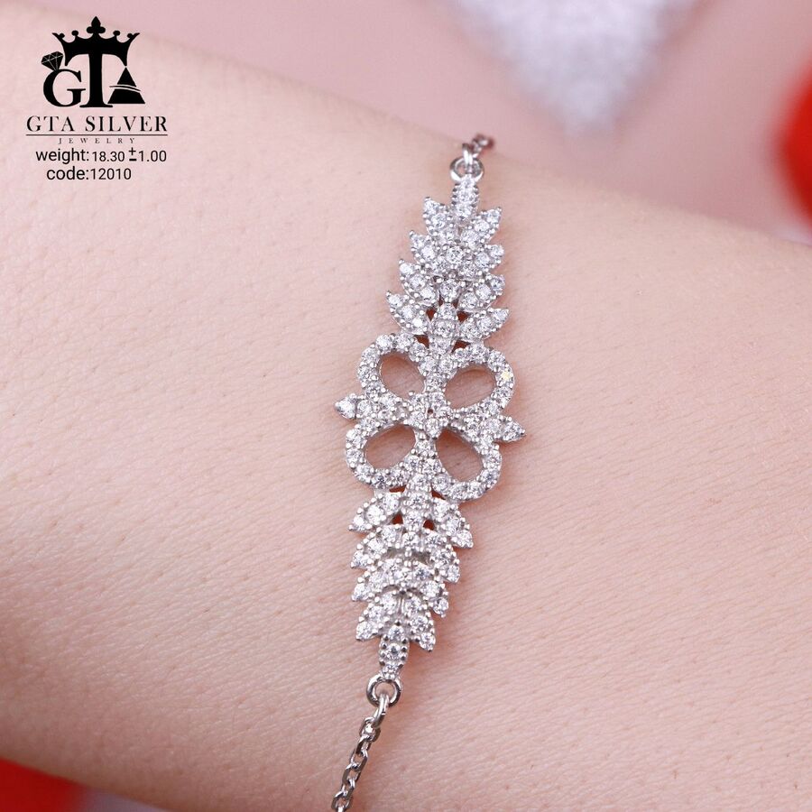 سرویس میکرو زنجیری نقره همراه با روکش آبطلای سفید؛ عیار 925، تمامی نگین های این سرویس جدید و ظریف با روش جدید میکروستینگ مخراج کاری شده است.