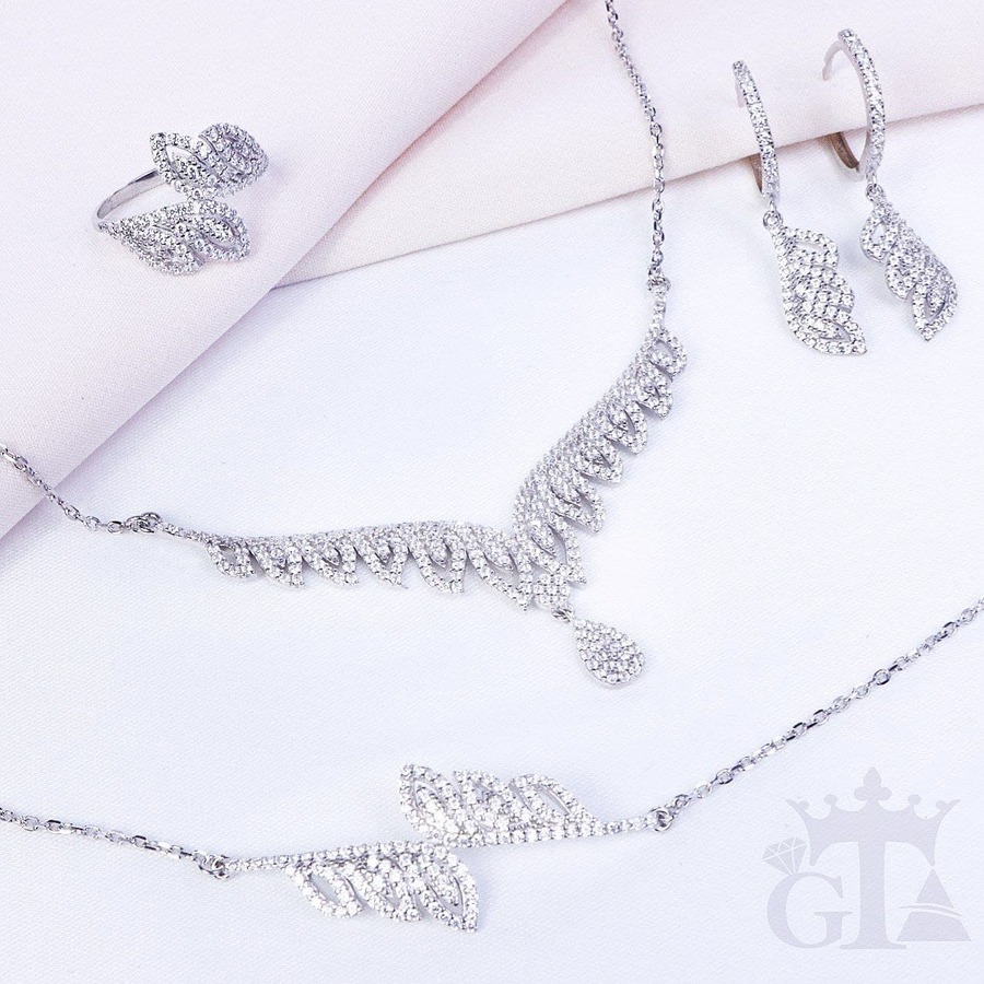 این محصول از جنس نقره با عیار 925 میباشد که با رادیوم آبکاری شده و دارای ثبات رنگ دائمی است. نگین های این محصول از نوع برلیان است که جلوه ویژه ای به محصول میبخشد.