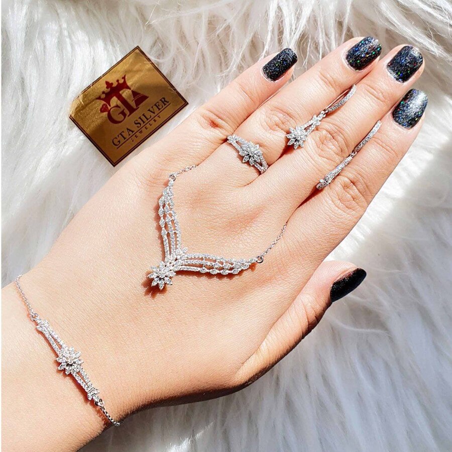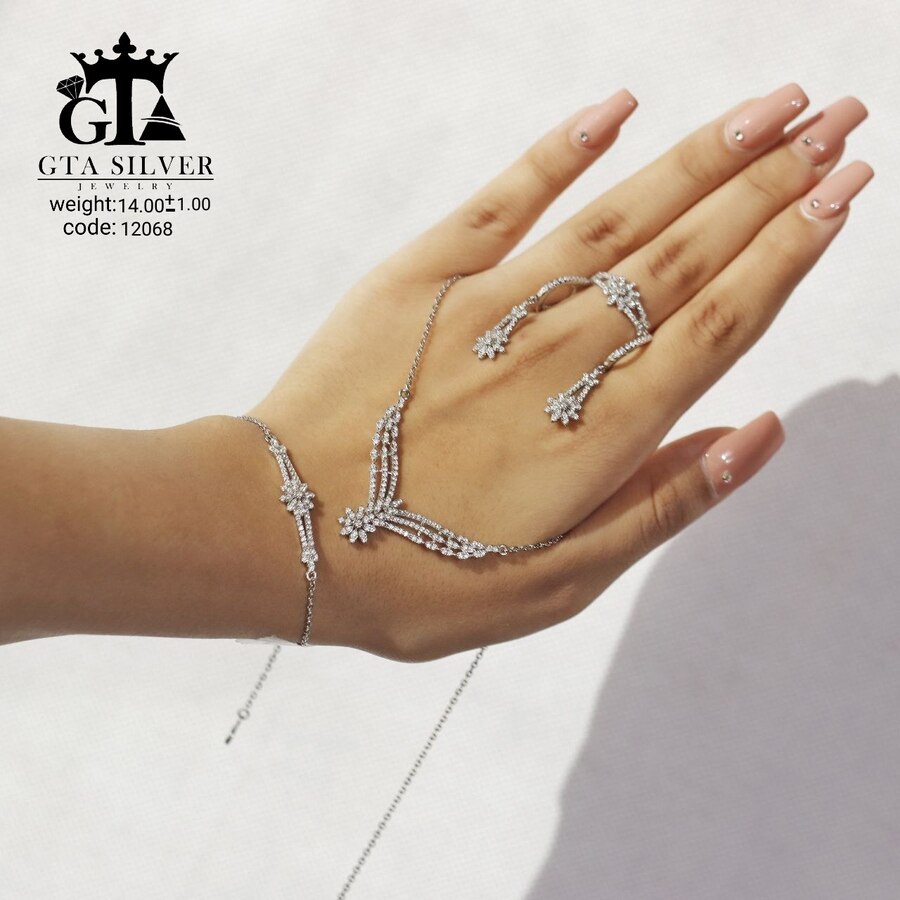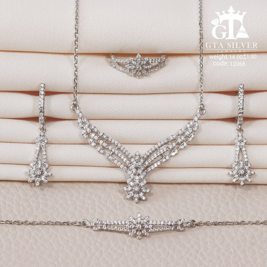 این محصول از جنس نقره با عیار 925 میباشد که با رادیوم آبکاری شده و دارای ثبات رنگ دائمی است. نگین های این محصول از نوع برلیان است که جلوه ویژه ای به محصول میبخشد.