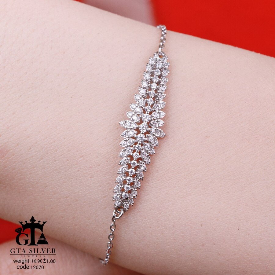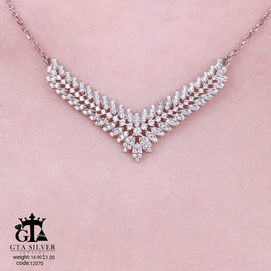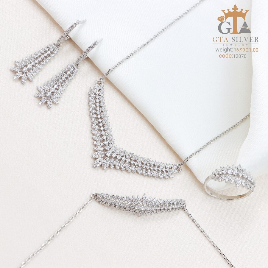 این محصول از جنس نقره با عیار 925 میباشد که با رادیوم آبکاری شده و دارای ثبات رنگ دائمی است. نگین های این محصول از نوع برلیان است که جلوه ویژه ای به محصول میبخشد.