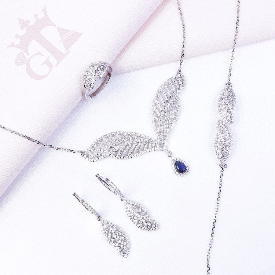 نیم ست نقره میکرو طرح بال کد 16314