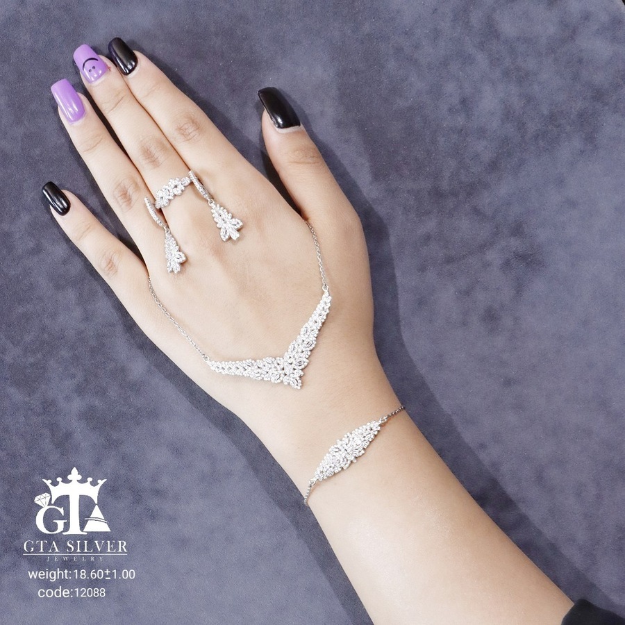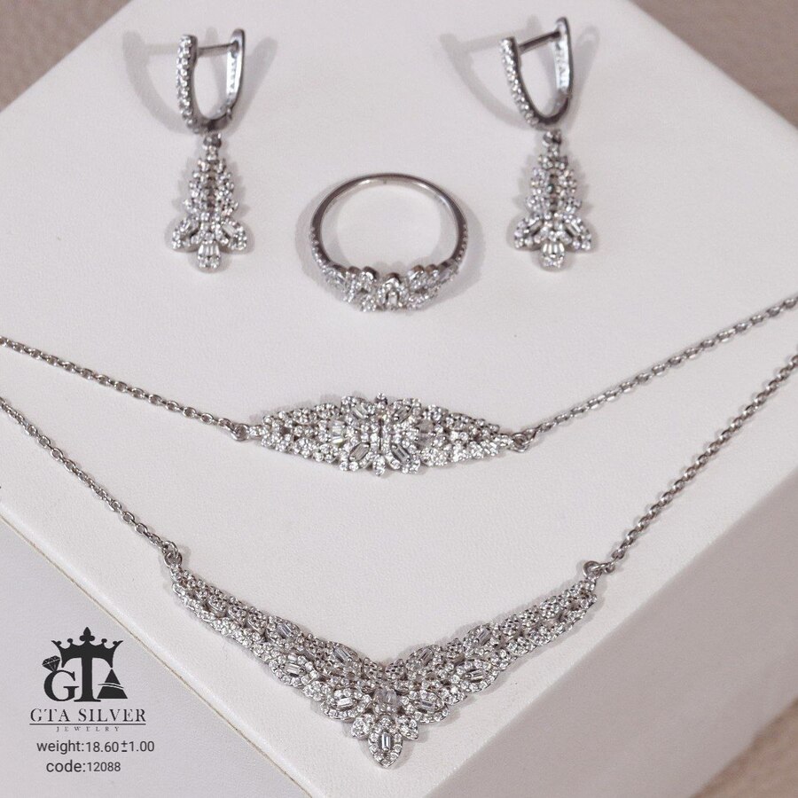 سرویس میکرو زنجیری نقره همراه با روکش آبطلای سفید؛ عیار 925، تمامی نگین های این سرویس جدید و ظریف با روش جدید میکروستینگ مخراج کاری شده است.