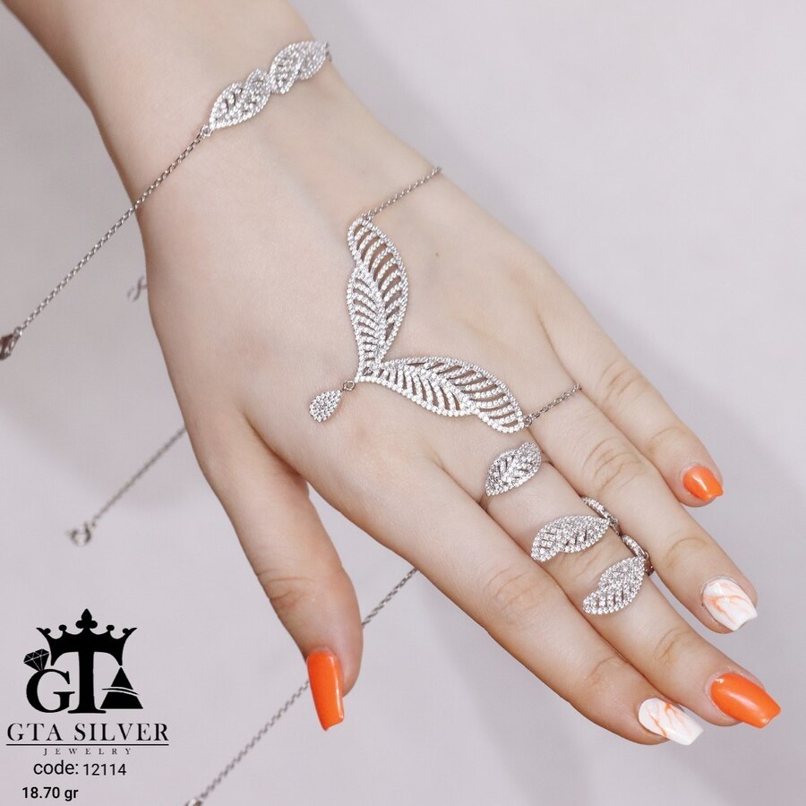 سرویس میکرو زنجیری نقره همراه با روکش آبطلای سفید؛ عیار 925، تمامی نگین های این سرویس جدید و ظریف با روش جدید میکروستینگ مخراج کاری شده است.