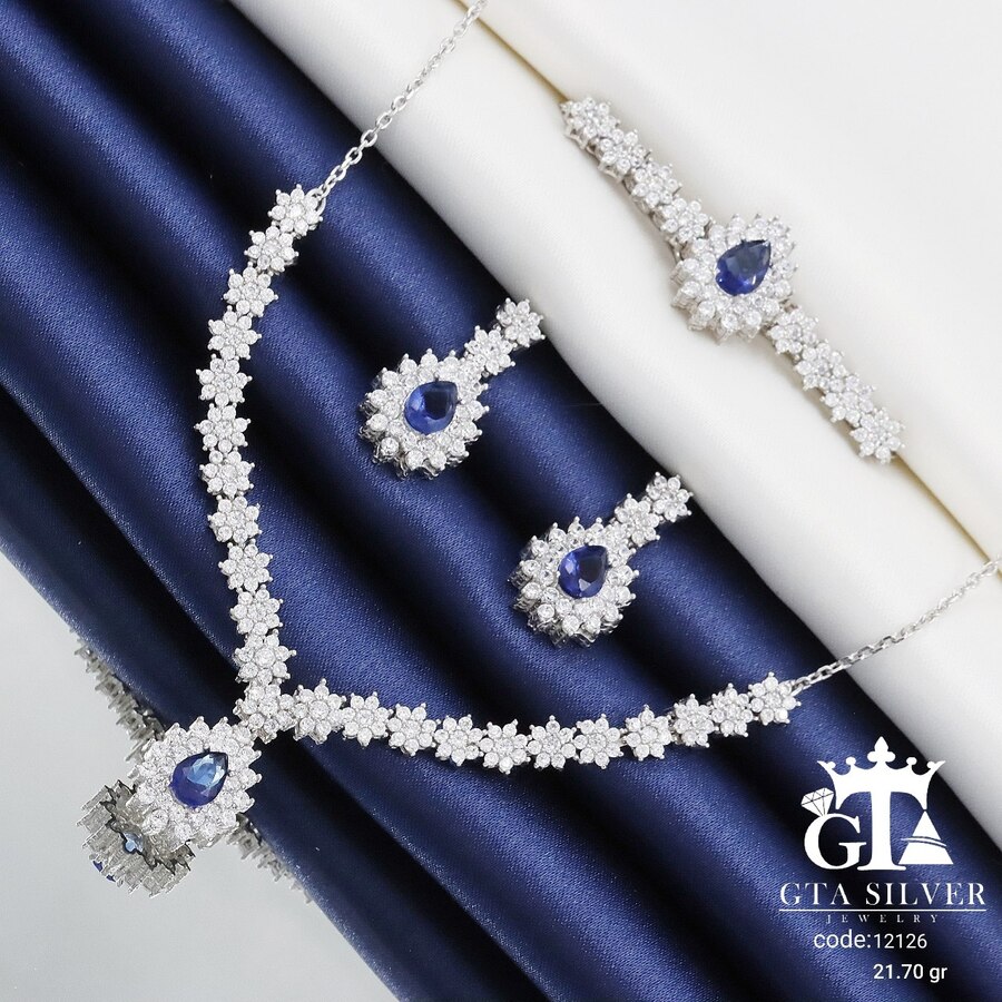 سرویس میکرو زنجیری نقره همراه با روکش آبطلای سفید؛ عیار 925، تمامی نگین های این سرویس جدید و ظریف با روش جدید میکروستینگ مخراج کاری شده است.