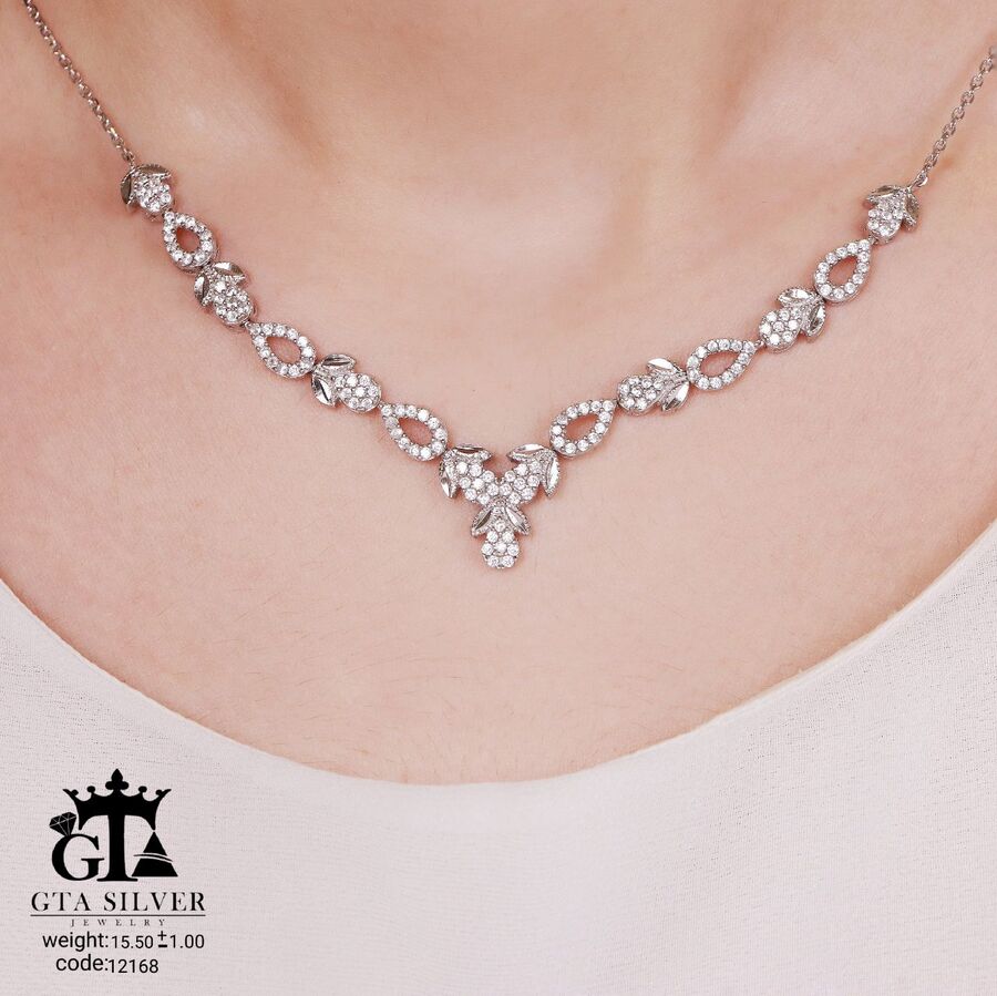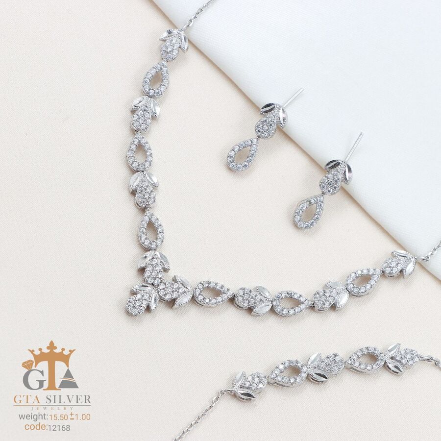 سرویس میکرو زنجیری نقره همراه با روکش آبطلای سفید؛ عیار 925، تمامی نگین های این سرویس جدید و ظریف با روش جدید میکروستینگ مخراج کاری شده است.