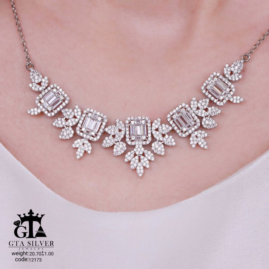 سرویس میکرو زنجیری نقره همراه با روکش آبطلای سفید؛ عیار 925، تمامی نگین های این سرویس جدید و ظریف با روش جدید میکروستینگ مخراج کاری شده است.