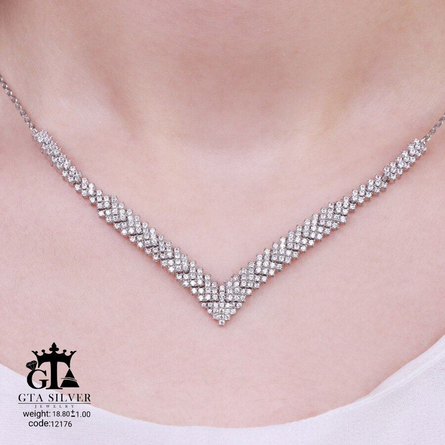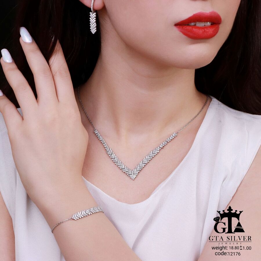 سرویس میکرو زنجیری نقره همراه با روکش آبطلای سفید؛ عیار 925، تمامی نگین های این سرویس جدید و ظریف با روش جدید میکروستینگ مخراج کاری شده است.