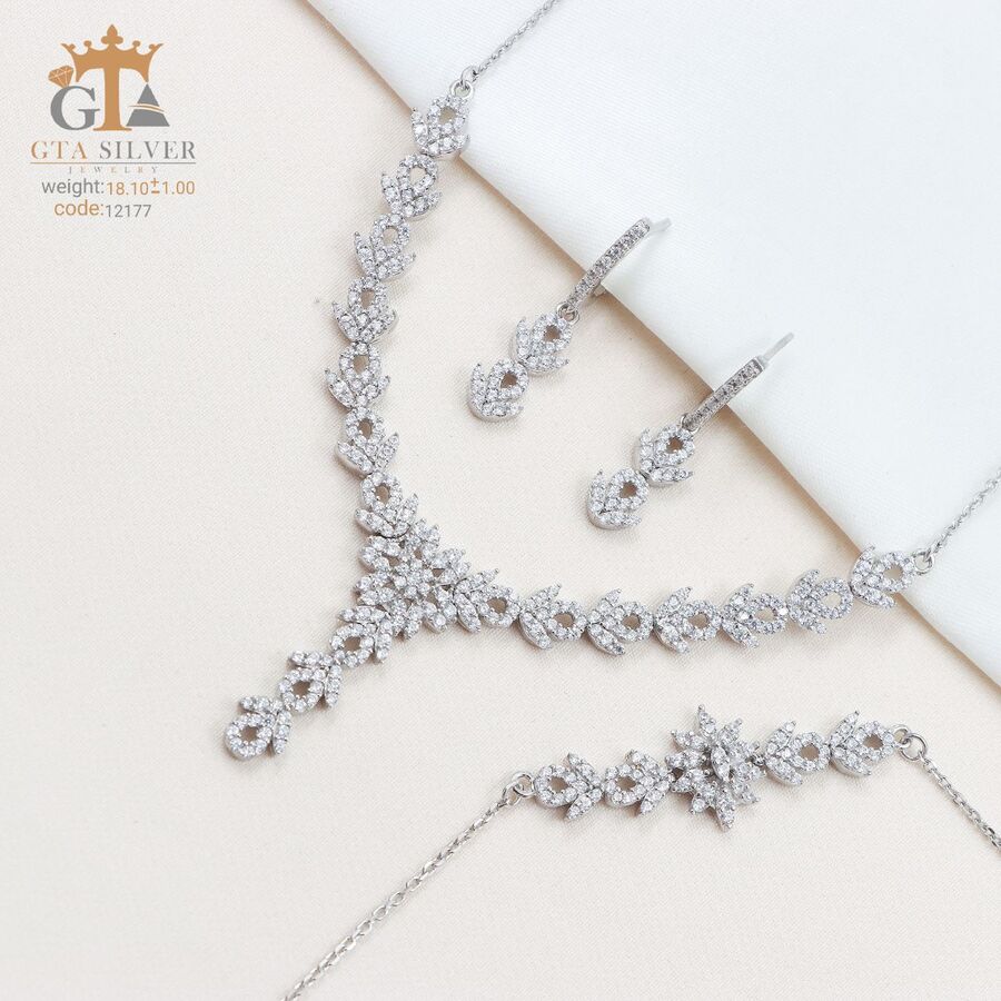 سرویس میکرو زنجیری نقره همراه با روکش آبطلای سفید؛ عیار 925، تمامی نگین های این سرویس جدید و ظریف با روش جدید میکروستینگ مخراج کاری شده است.