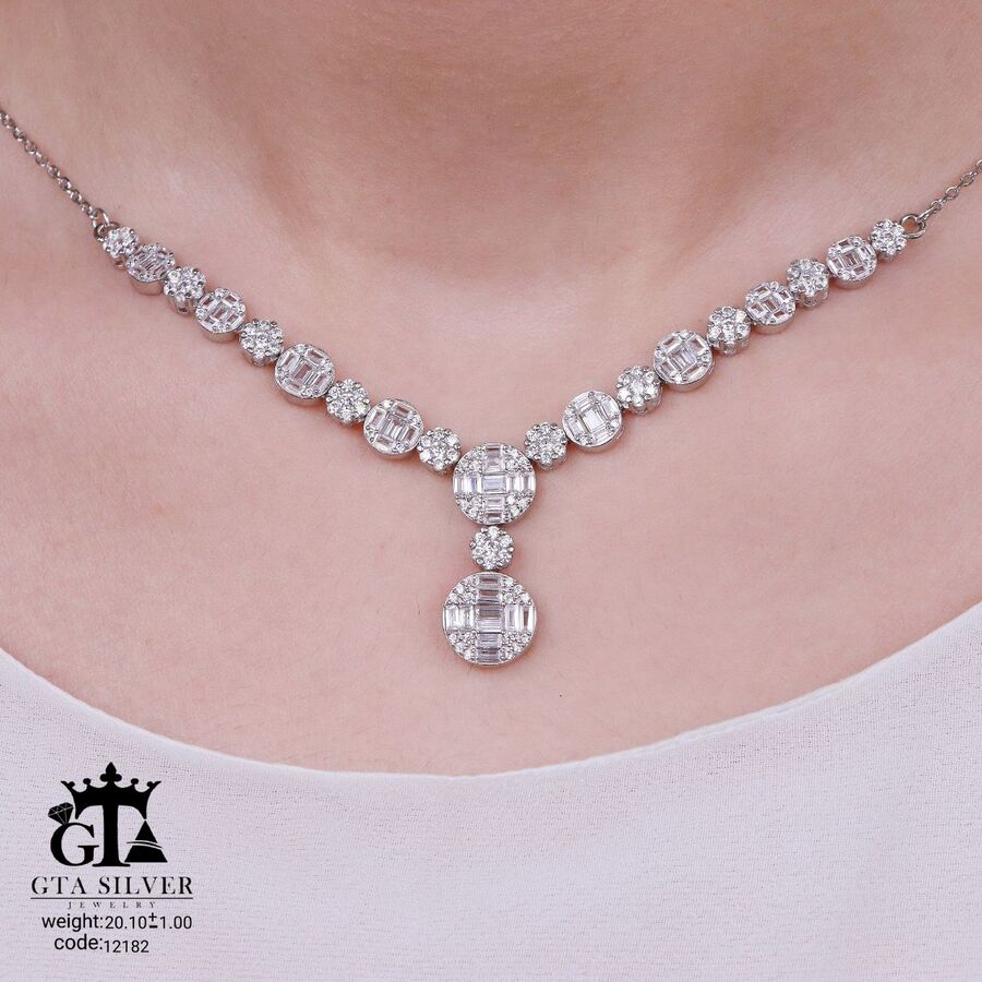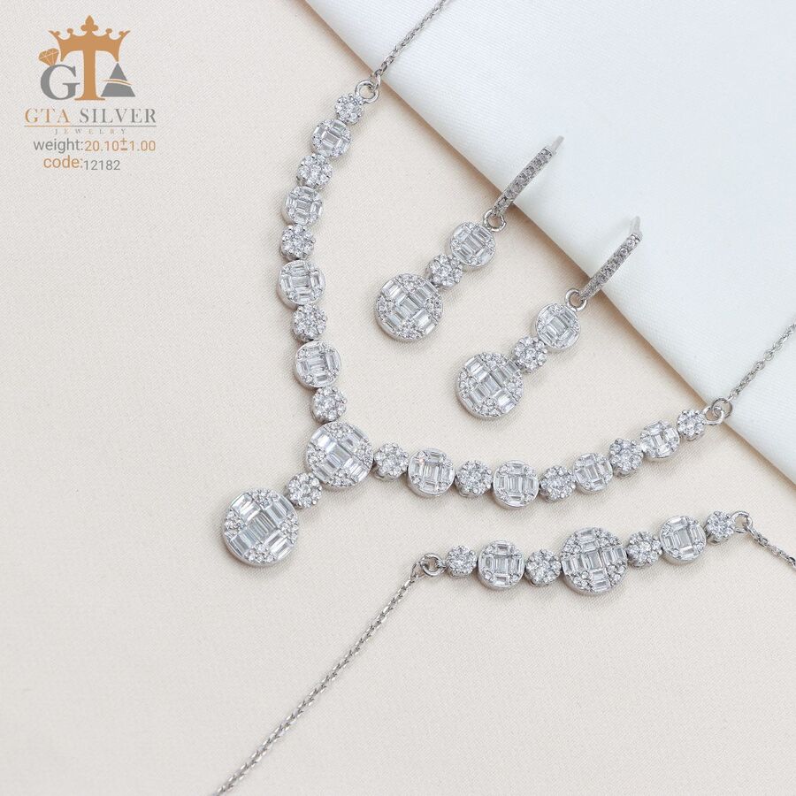 سرویس میکرو زنجیری نقره همراه با روکش آبطلای سفید؛ عیار 925، تمامی نگین های این سرویس جدید و ظریف با روش جدید میکروستینگ مخراج کاری شده است.
