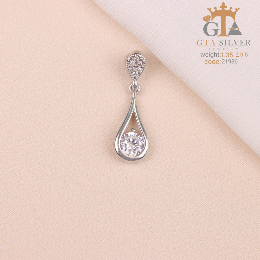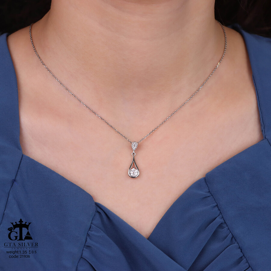 مدال نقره زنانه اشکی تک نگین میکرو کد 21936