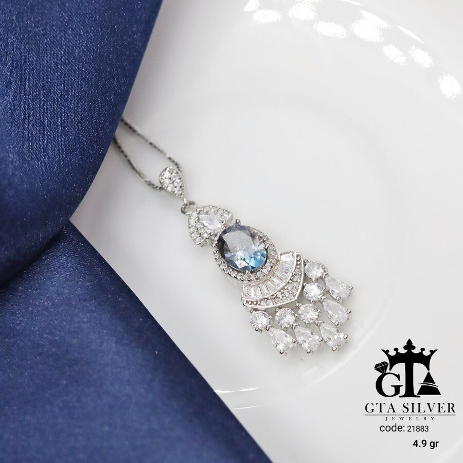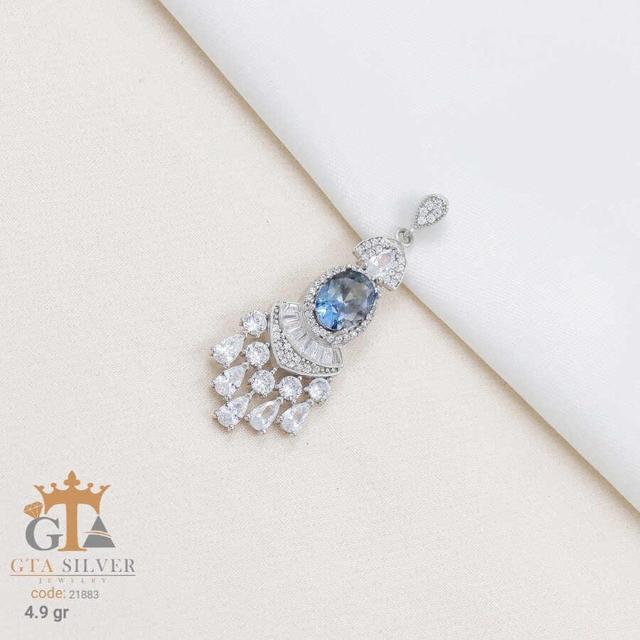 مدال نقره زنانه تک نگین مجلسی میکرو کد 21883
