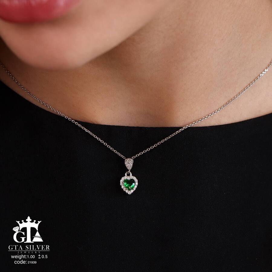 مدال نقره زنانه قلبی تک نگین میکرو کد 21939