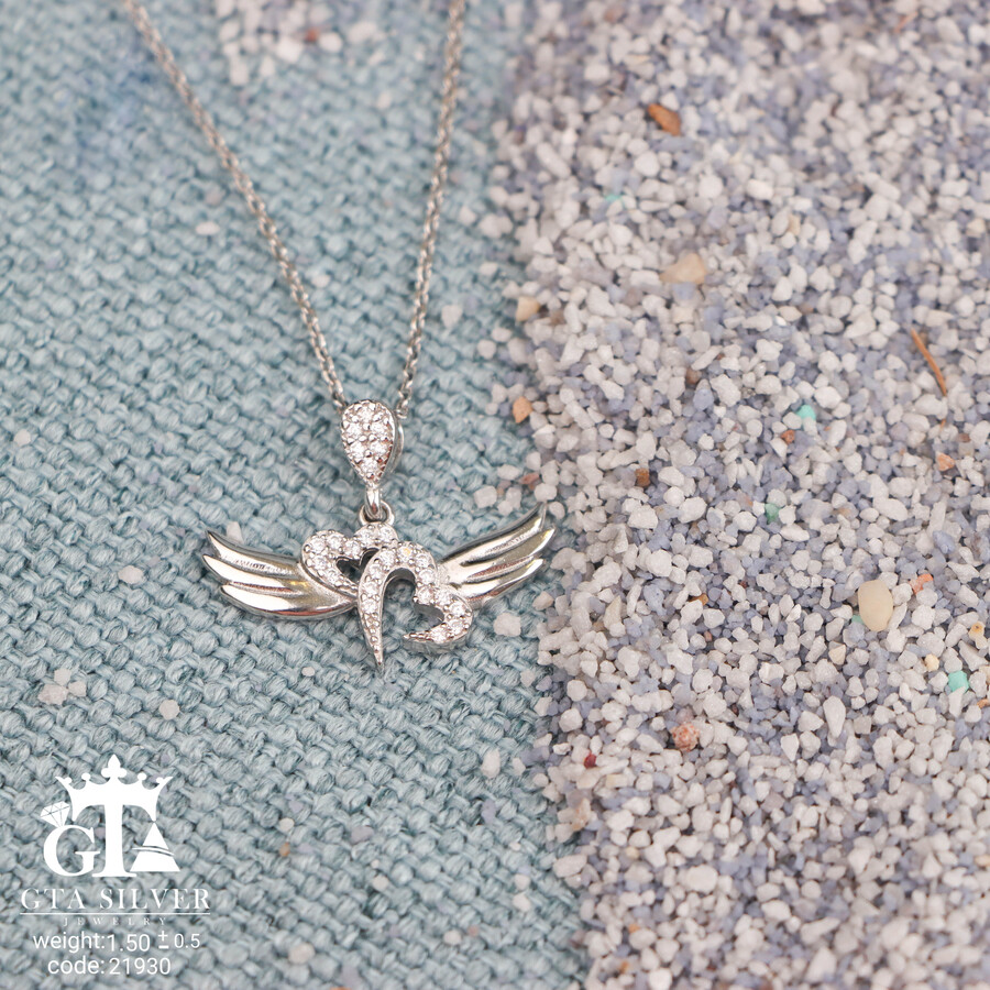 مدال نقره زنانه قلب بالدار میکرو کد 21930