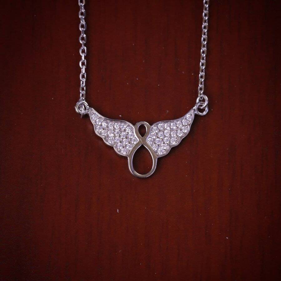 مدال میکرو طرح بال بی نهایت (For Ever) همراه با زنجیر , کاری بسیار ظریف و زیبا که نگین هایش با روش میکروستینگ مخراج کاری شده و دارای روکش آبطلای سفید می باشد. عیار این کار مانند تمامی کار های موجود, عیار استاندارد 925 می باشد.