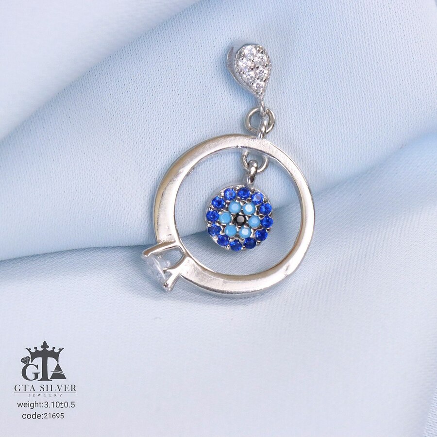مدال نقره میکرو طرح حلقه و چشم نظر کد 21695