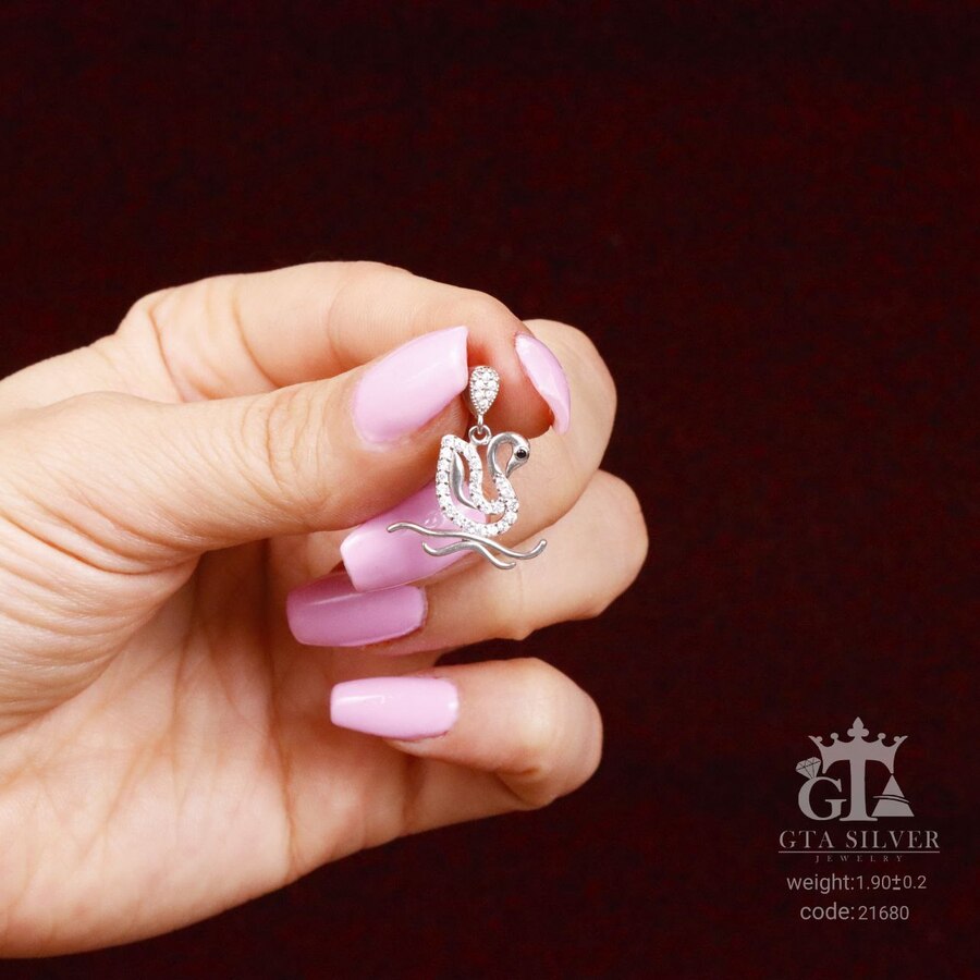 مدال نقره میکرو طرح قو , کاری بسیار ظریف و زیبا که نگین هایش با روش میکروستینگ مخراج کاری شده و دارای روکش آبطلای سفید می باشد. عیار این کار مانند تمامی کار های موجود, عیار استاندارد 925 می باشد.