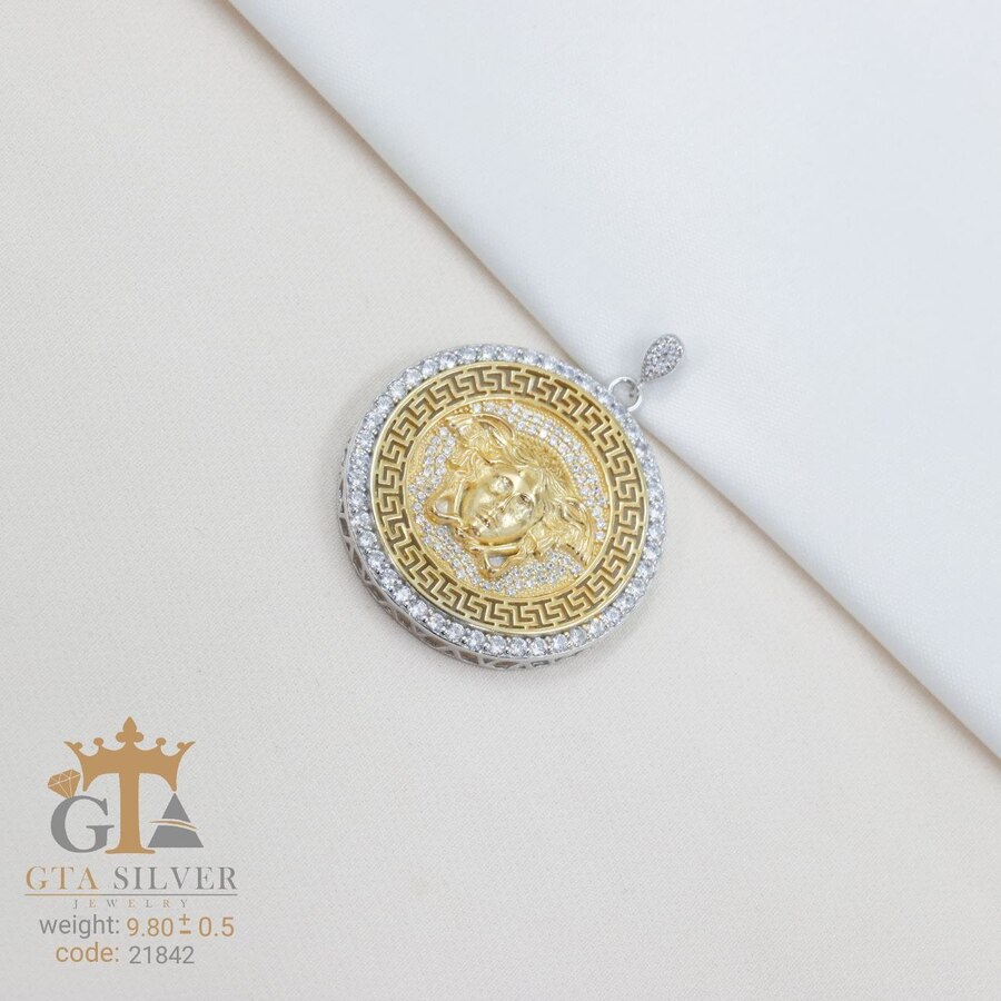 مدال نقره میکرو , کاری بسیار ظریف و زیبا که نگین هایش با روش میکروستینگ مخراج کاری شده و دارای روکش آبطلای سفید می باشد. عیار این کار مانند تمامی کار های موجود, عیار استاندارد 925 می باشد.