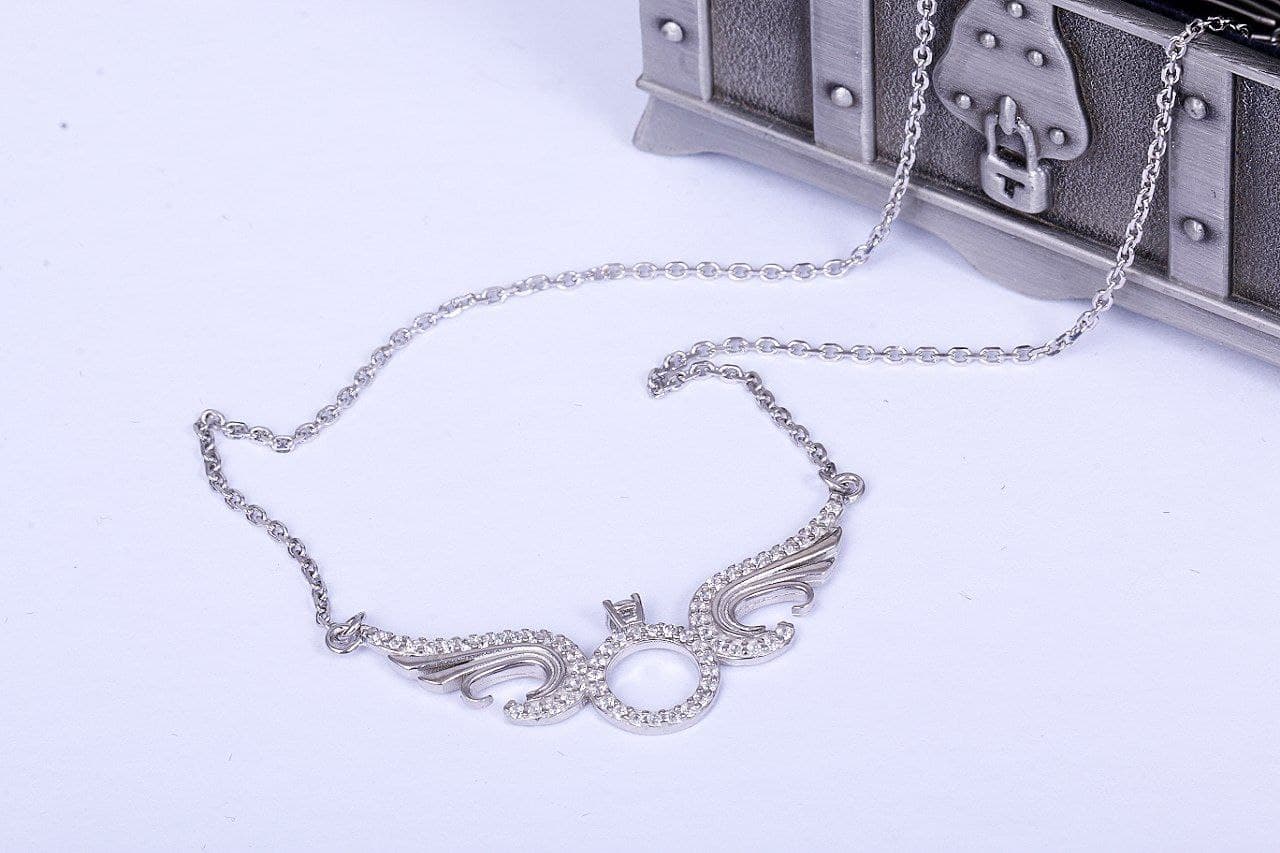 مدال میکرو طرح پرطرفدار حلقه و بال که نگین هایش با روش میکروستینگ مخراج کاری شده اند و دارای روکش آب طلای سفید می باشد. لازم به ذکر می باشد که این طرح پرفروش همراه با زنجیر می باشد.