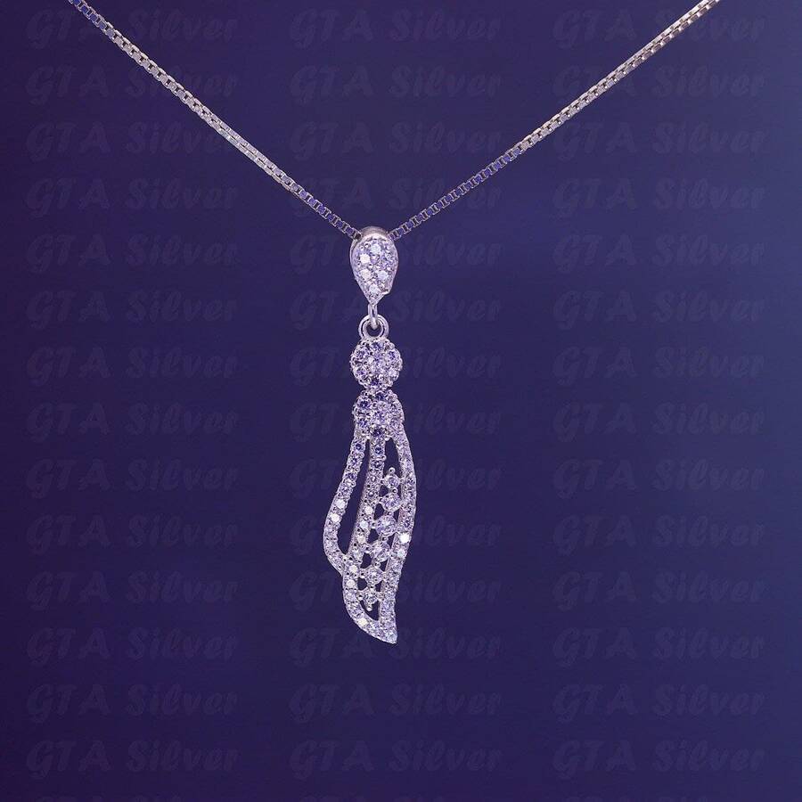 مدال میکرو همراه با روکش آب طلای سفید که نگین هایش به روش میکروستینگ مخراج کاری شده اند. عیار این کار مانند تمامی کار های موجود, عیار استاندارد 925 می باشد. (وزن درج شده بدون زنجیر محاسبه شده است )