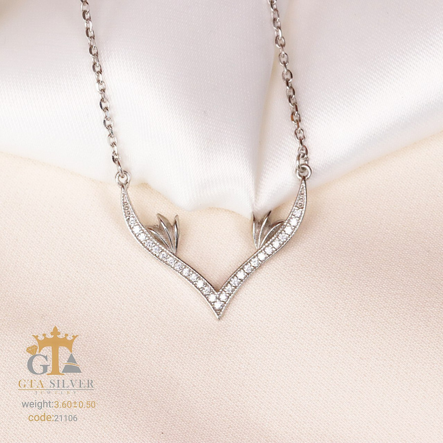 مدال میکرو همراه با زنجیر و روکش آب طلای سفید که نگین هایش به روش میکروستینگ مخراج کاری شده اند. عیار این کار مانند تمامی کار های موجود, عیار استاندارد 925 می باشد.
