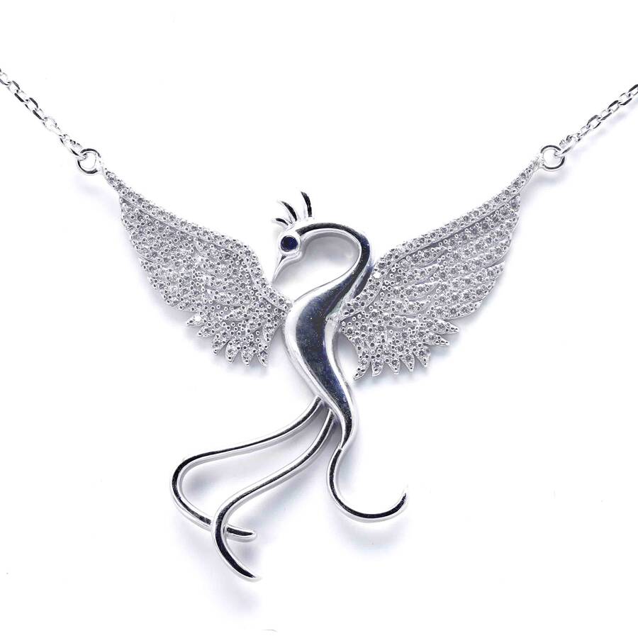 مدال طرح سیمرغ با زنجیر متصل ؛ نقره با عیار استاندارد استرلینگ (925) با آبکاری طلاسفید