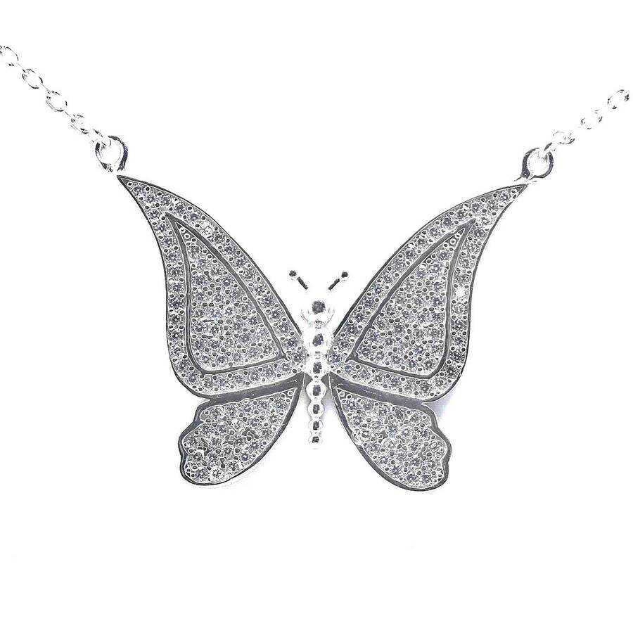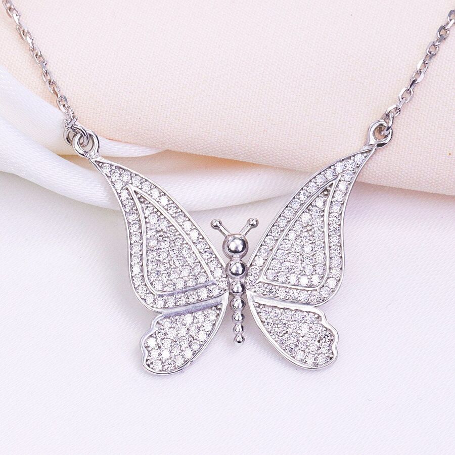 مدال میکرو طرح پروانه با نگین های زیرکونیا و آبکاری طلاسفید رودیوم