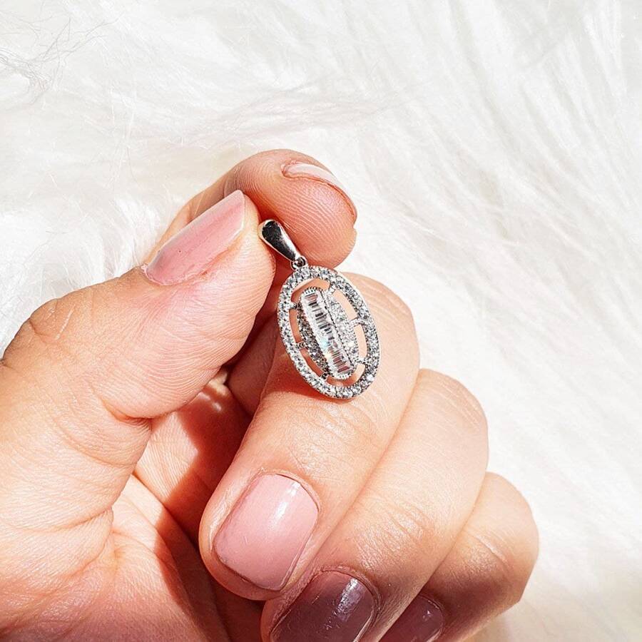 مدال میکرو کاری بسیار ظریف و زیبا که نگین هایش با روش میکروستینگ مخراج کاری شده اند. همچنین این مدال دارای نگین های باگت هم می باشد.