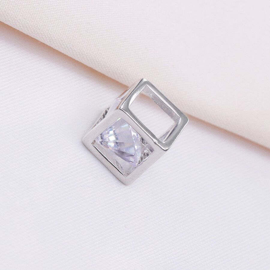 مدال میکرو طرح جدید مکعب همراه با زنجیر و روکش آب طلای سفید , کاری بسیار ظریف و زیبا که نگین هایش با روش میکروستینگ مخراج کاری شده اند