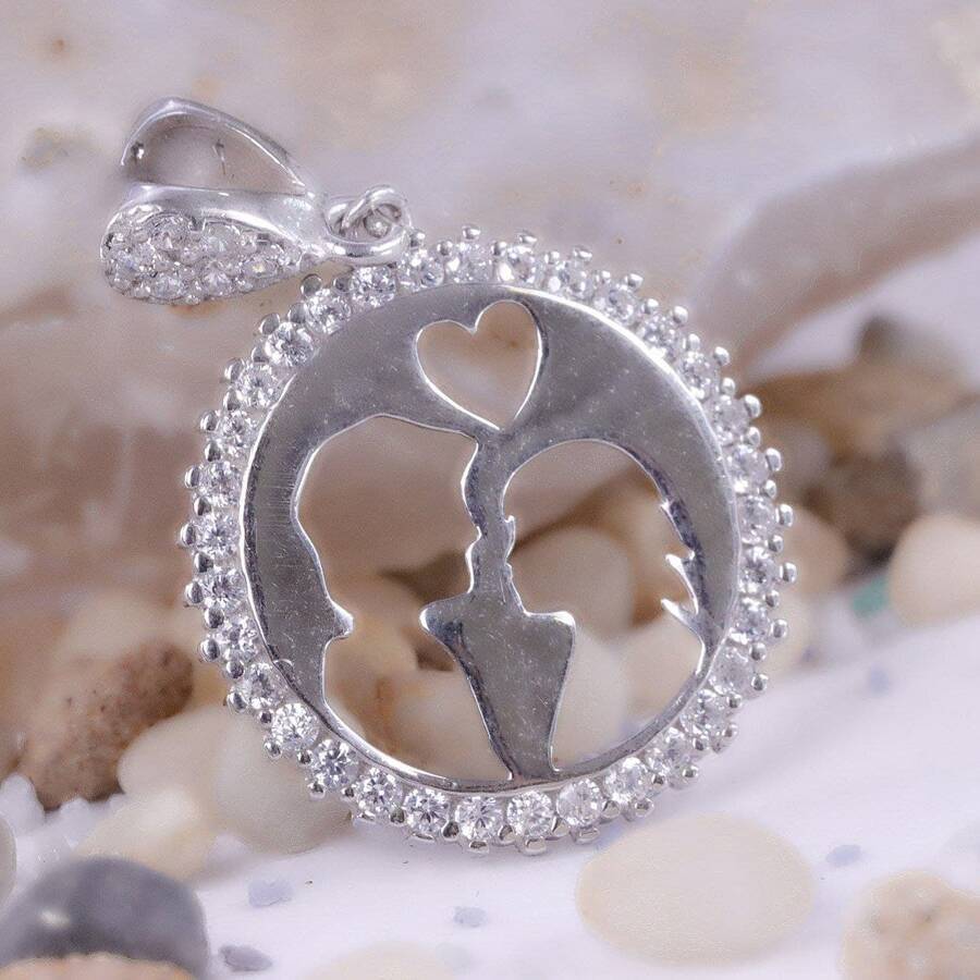 مدال میکرو طرح جدید عشق همراه با روکش آب طلای سفید , کاری بسیار ظریف و زیبا که نگین هایش با روش میکروستینگ مخراج کاری شده اند.