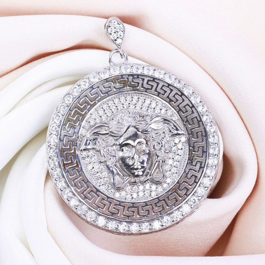 مدال میکرو , کاری بسیار ظریف و زیبا که نگین هایش با روش میکروستینگ مخراج کاری شده و دارای روکش آبطلای سفید می باشد. عیار این کار مانند تمامی کار های موجود, عیار استاندارد 925 می باشد.