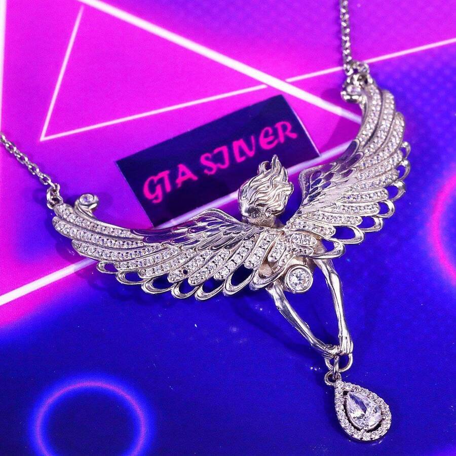 مدال میکرو همراه با زنجیر , کاری بسیار ظریف و زیبا که نگین هایش با روش میکروستینگ مخراج کاری شده و دارای روکش آبطلای سفید می باشد. عیار این کار مانند تمامی کار های موجود, عیار استاندارد 925 می باشد.