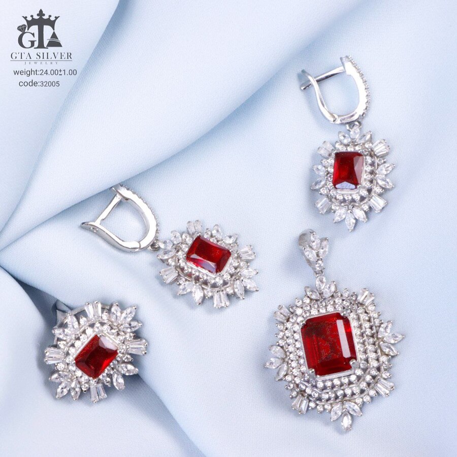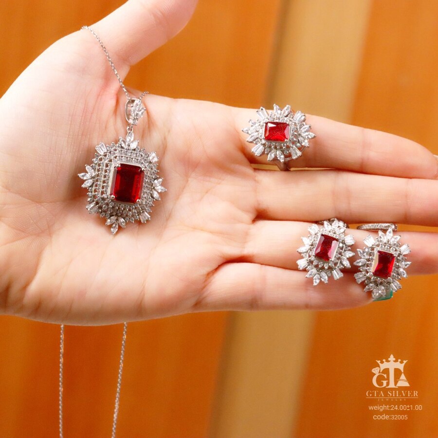 نیم ست جواهری نقره مدل آتنا با نگین های برلیان و مارکیز و تیپرز که تمامی نگین های آن با روش جدید میکروستینگ مخراج کاری شده اند. عیار این کار عیار استاندارد 925 می باشد.