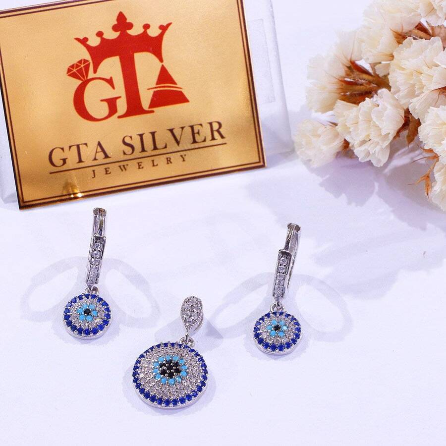 نیم ست نقره میکرو رنگی طرح چشم نظر کد 16267