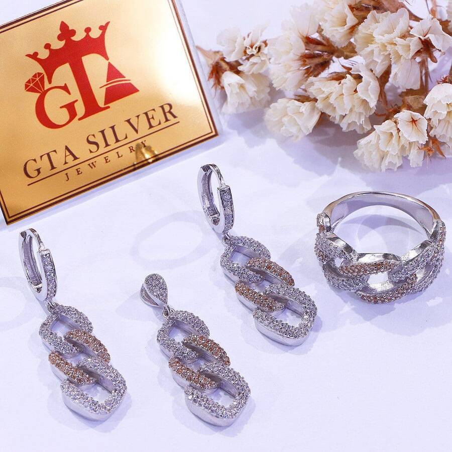 نیم ست نقره میکرو رنگی طرح کارتیر کد 16286