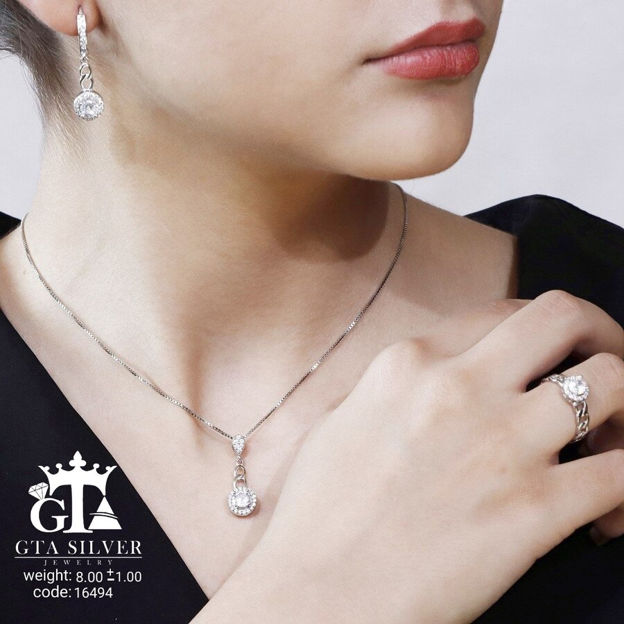 نیم ست نقره میکرو طرح امرالدکات کد 16494