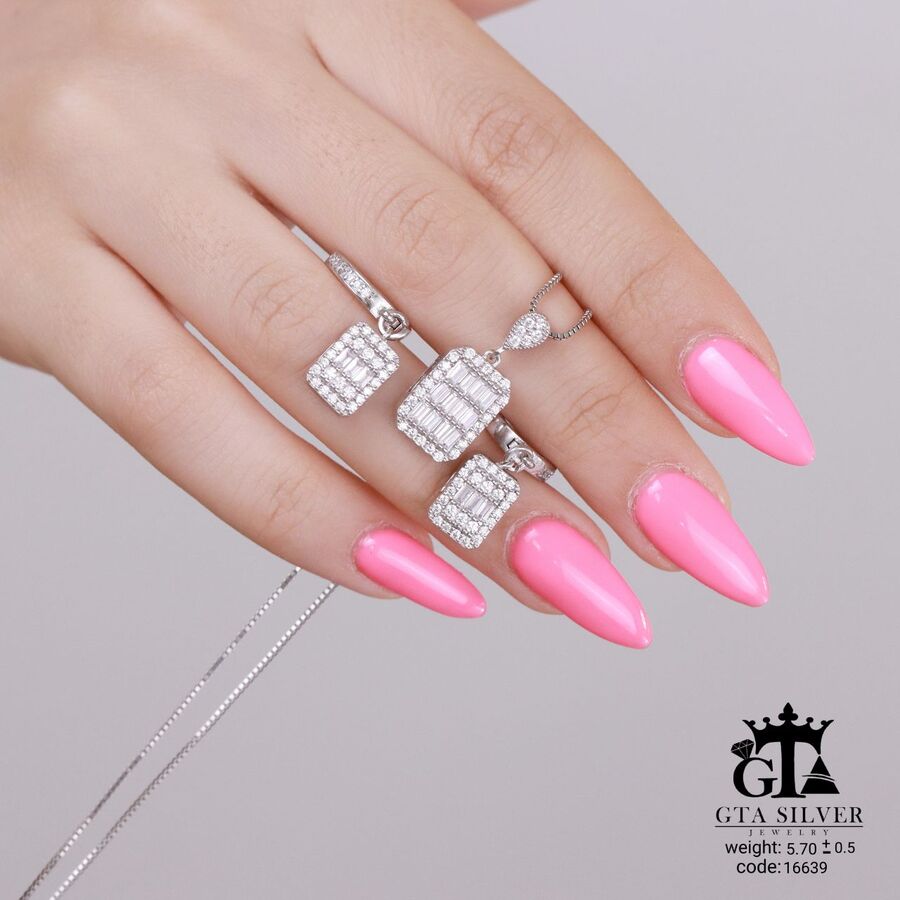 نیم ست نقره میکرو طرح امرالدکات کد 16640