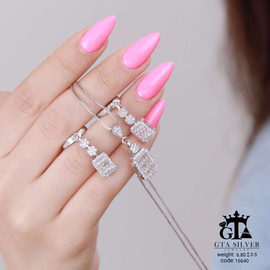 نیم ست نقره میکرو طرح امرالدکات کد 16640