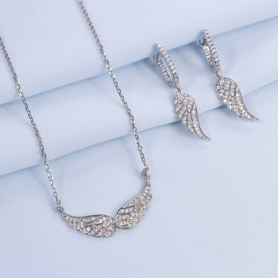 نیم ست نقره میکرو طرح بال کد 16314