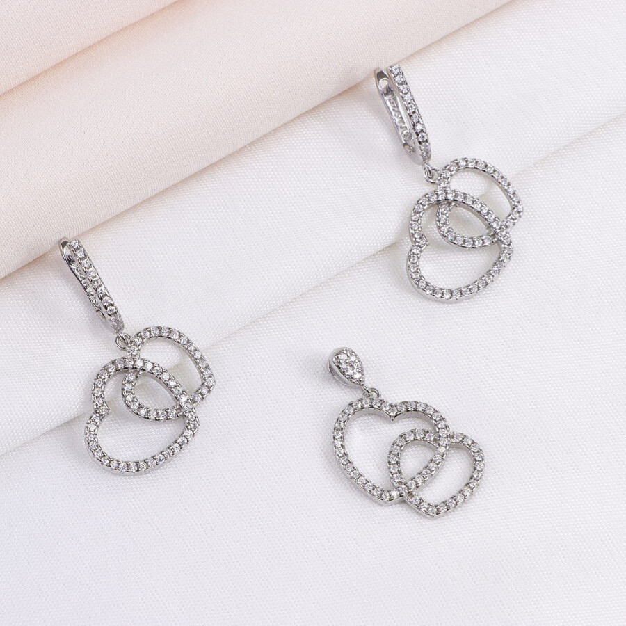 نیم ست نقره میکرو طرح جفت قلب کد 16322