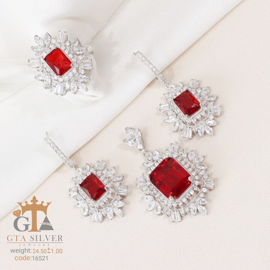 نیم ست نقره مدل میکرو همراه با روکش آبطلای سفید؛ عیار 925، تمامی نگین های این نیم ست جدید، ظریف با روش جدید میکروستینگ مخراج کاری شده
