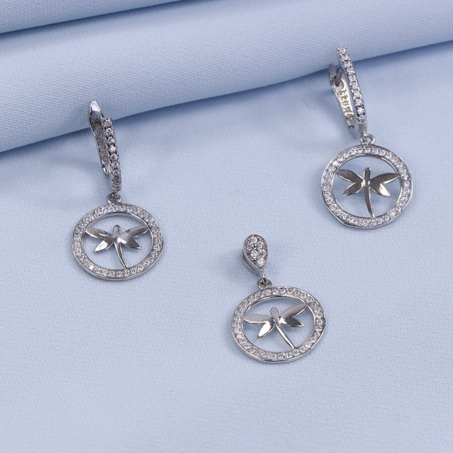 نیم ست نقره میکرو طرح سنجاقک کد 16351