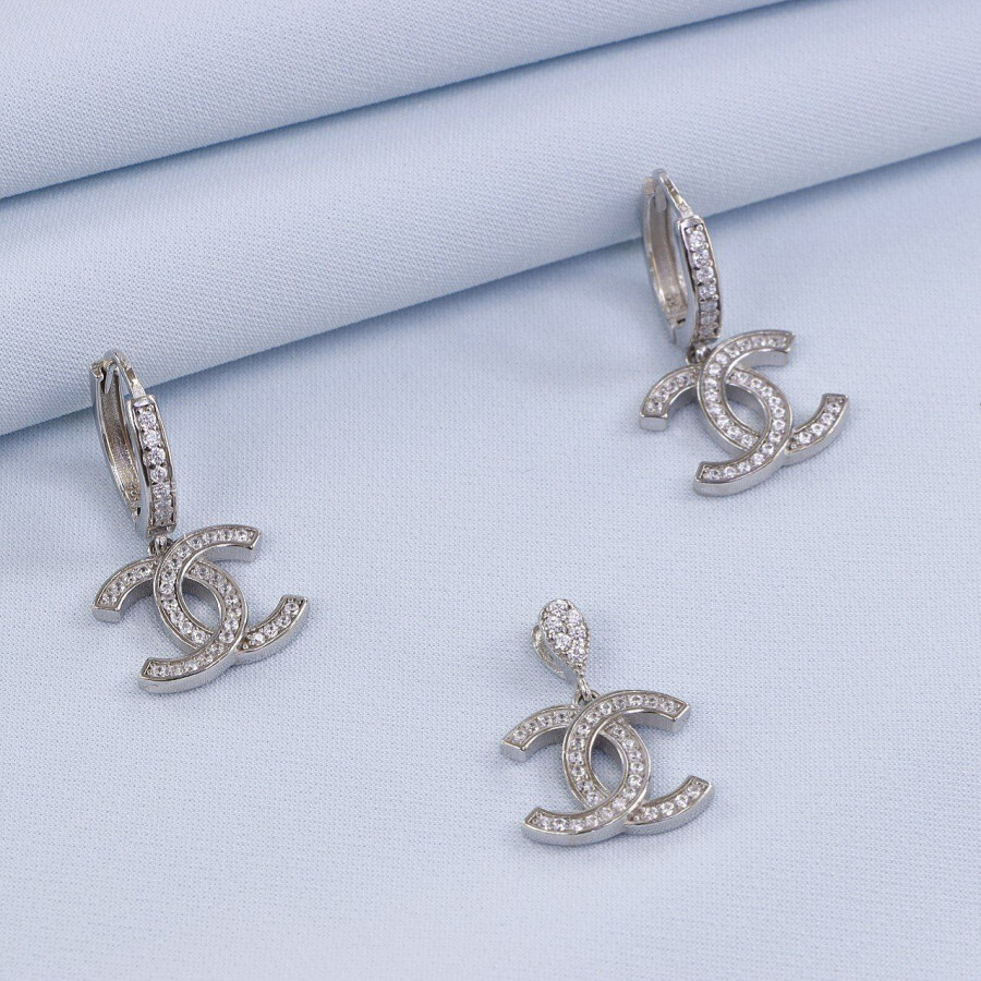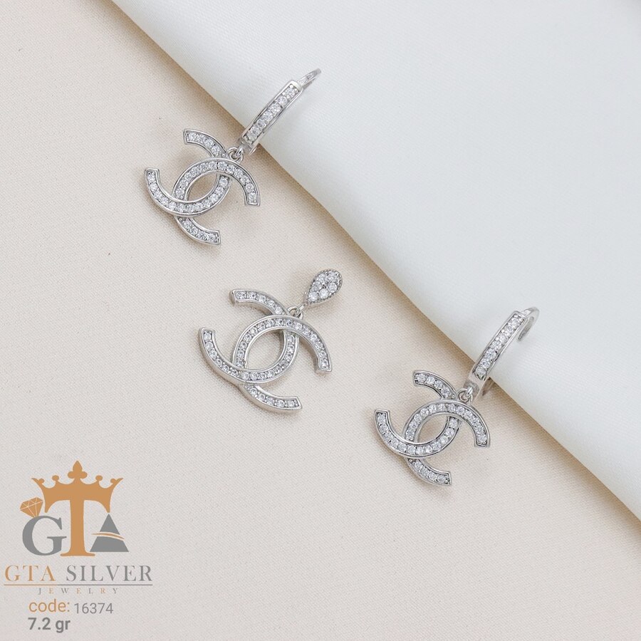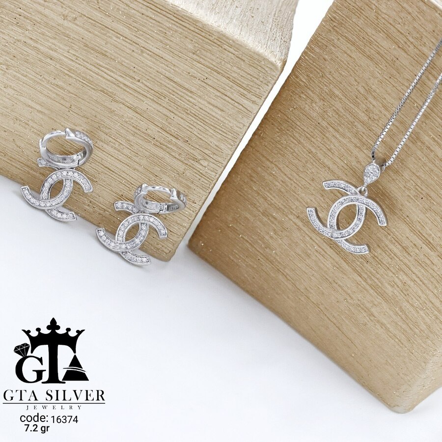 نیم ست نقره میکرو طرح شانل کد 16374