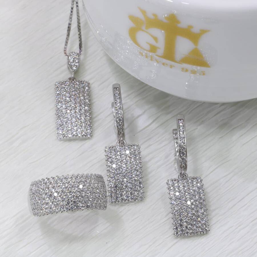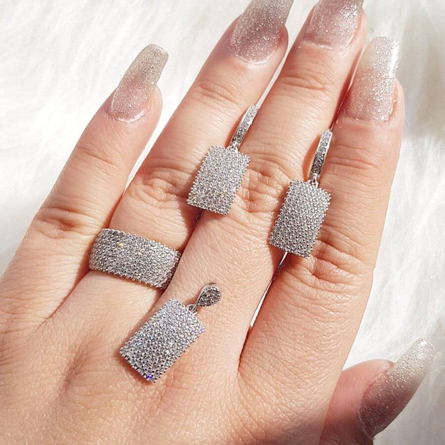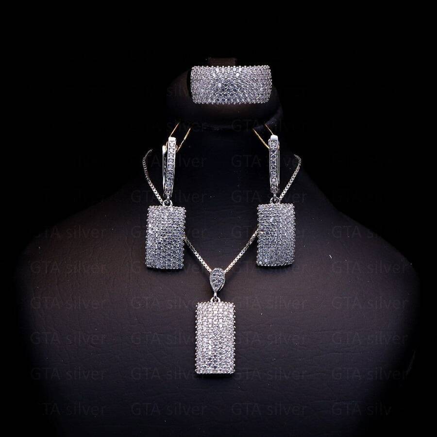 نیم ست مدل میکرو همراه با روکش آبطلای سفید؛ لازم به ذکر می باشد که عیار این کار مانند تمامی کارهای موجود, عیار استاندارد 925 بوده و تمامی نگین های این نیم ست با روش جدید و به روز میکروستیگ مخراج کاری شده اند.